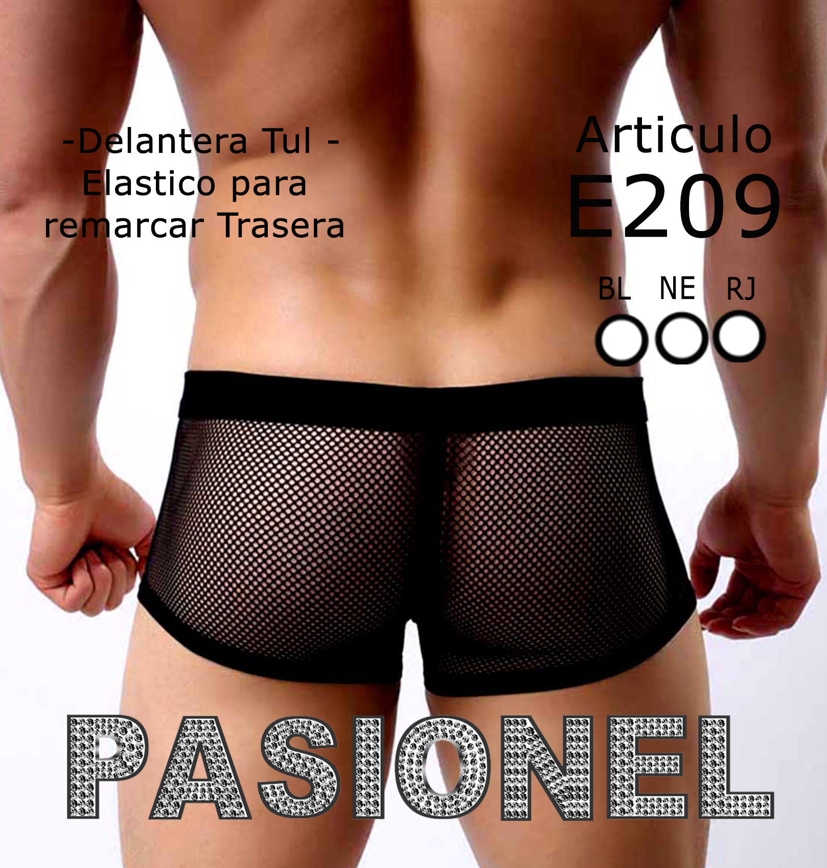 Boxer de tul para hombre con elástico fruncido en cola, para efecto push up de glúteos. Diseñado para seducir.