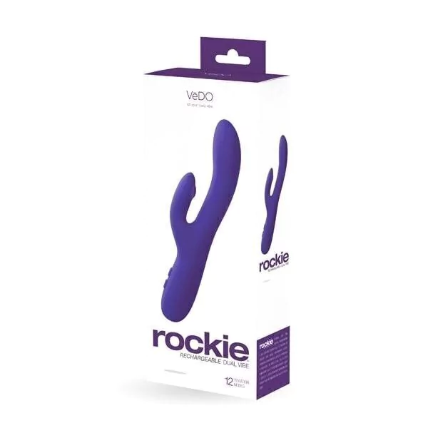 El nuevo modelo Rockie de VeDO posee dos motores independientes con extremada potencia. El vibrador principal hará cosquillas y deleitará tu Punto G con sus 12 intensas vibraciones. Mientras el cosquilleo del estimulador clitorial, dado por sus 12 vibraciones adicionales y su flexibilidad, completará el combo perfecto para tu deleite personal. Completamente sumergible, este vibrador dual está listo para todo tipo de juegos.