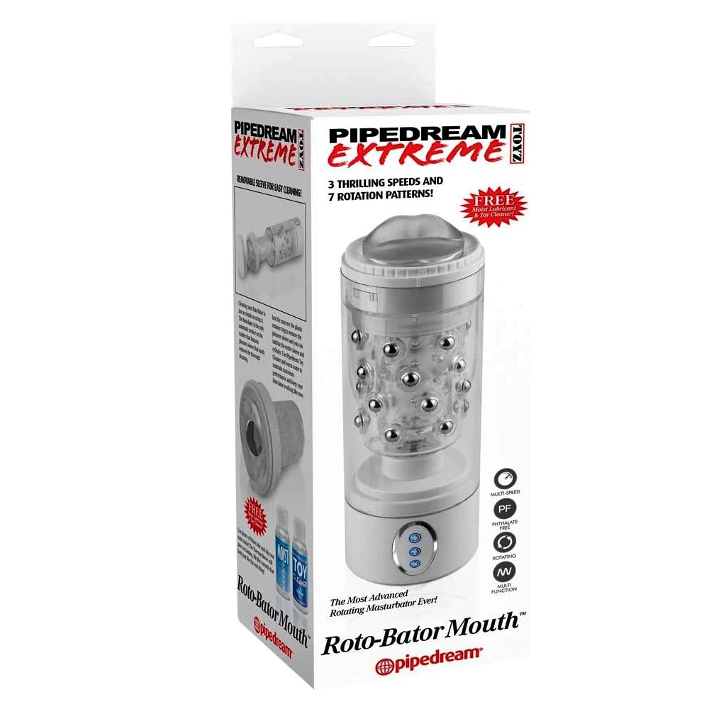 Preparate para el masturbador automático más increíble, intenso y avanzado! con una rotación que jamás vas a poder imaginar. El Roto-Bator Mouth es el masturbador más potente que va a hacer todo el trabajo por vos. Sólo presiona un botón y disfruta de la estimulación completa desarrollada para hacerte ver las estrellas. El mecanismo avanzado de rotación pone un giro completo en la masturbación masculina con cada revolución de la suave manga TPR, perlas internas colocados estratégicamente, van a masajear cada centímetro de tu pene. La manga super suave envuelve las áreas sensibles de tu miembro, una boca real no podría igualarlo. Vas a obtener la satisfacción sin manos cuando quieras, durante el tiempo que quieras. Cuenta con 3 velocidades y 7 patrones de rotación. El botón de rotación inversa cambia de dirección instantánea de la textura interna, permitiéndote experimentar con cientos de combinaciones.