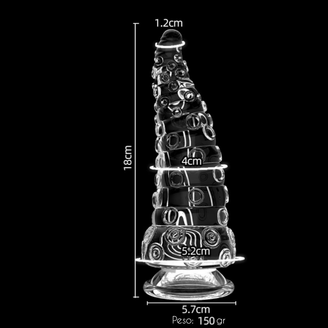 Con una longitud total de 18 cm y un diámetro mayor de 5,7 cm, es ideal para principiantes. Su diseño realista con tentáculos texturizados brinda sensaciones únicas y estimulantes. Además, su base con una ventosa adherente permite fijarlo en superficies para un uso manos libres y mayor versatilidad.
