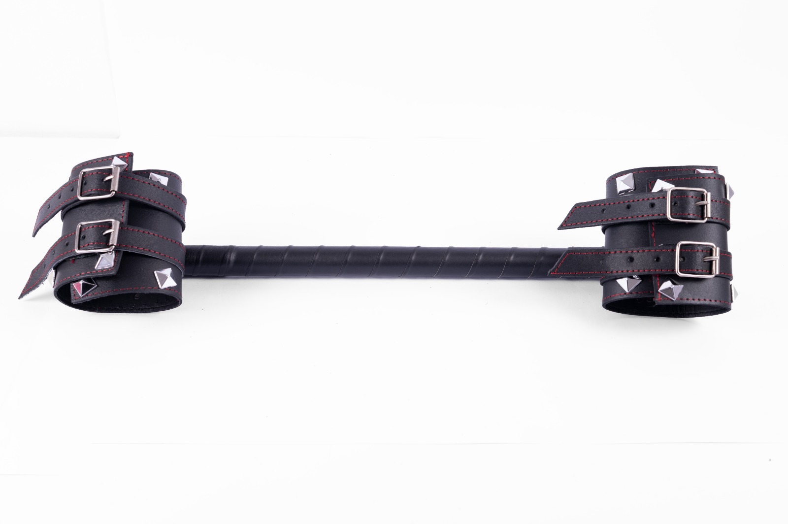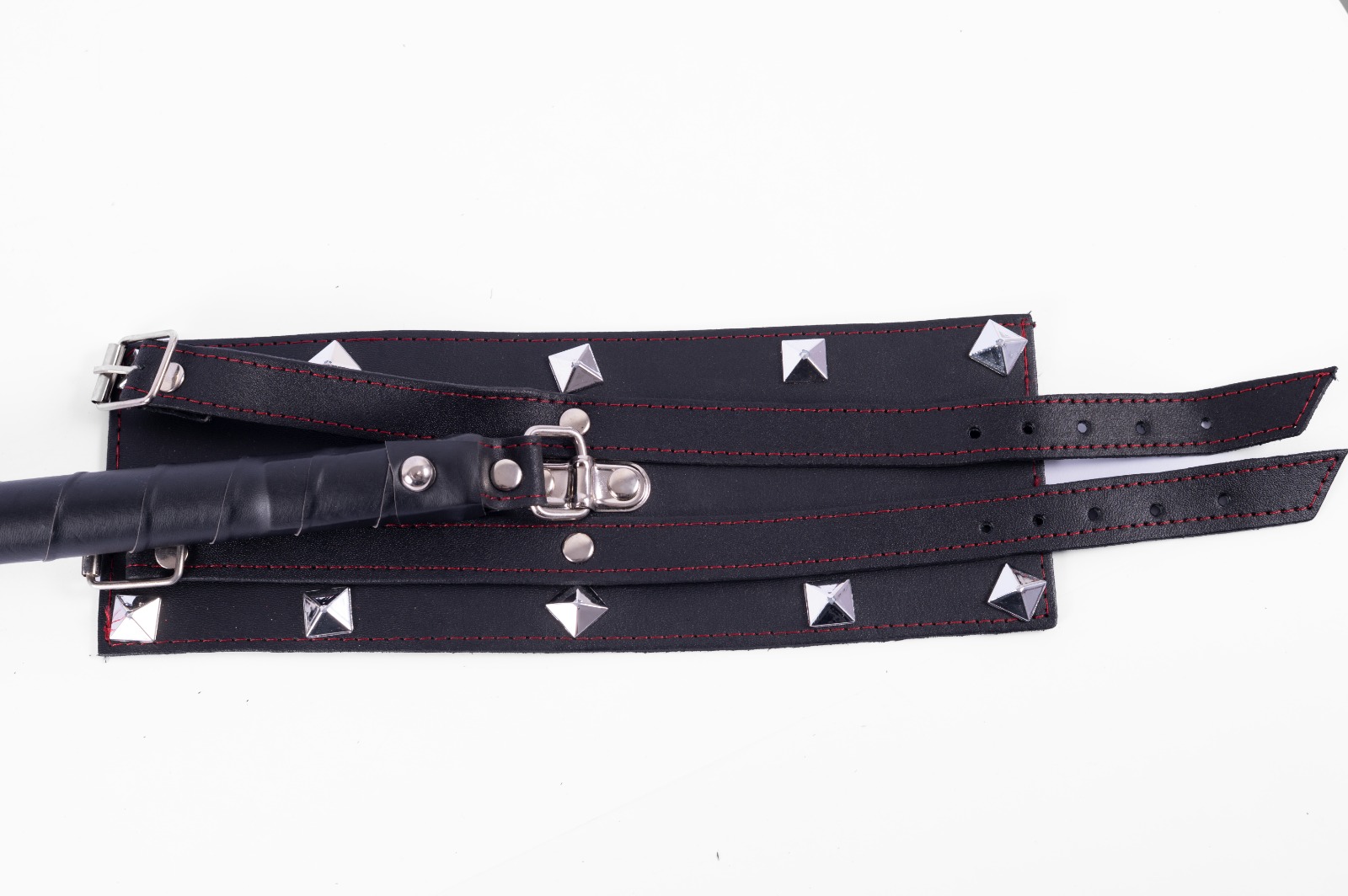 Esposas de cuero, doble hebillas y tachas.