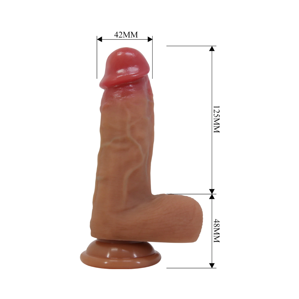 Disfruta de una experiencia íntima natural y cómoda con el dildo Pretty Love Curtis, diseñado para quienes buscan realismo y versatilidad en un solo producto. Fabricado en silicona de alta calidad, este consolador ofrece un tacto suave y aterciopelado, detalles realistas como venas pronunciadas, una cabeza genital abultada y testículos que aportan un aspecto auténtico.