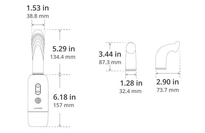 Su diseño compacto y ergonómico permite múltiples posiciones y cuenta con accesorios intercambiables: dildo recto con calor, dildo curvo para punto G y base clitorial. Además, puede usarse manualmente o con ventosa para una experiencia completamente manos libres. Controlala fácilmente mediante la app Lovense Remote y disfrutá hasta 4 horas de juego continuo.