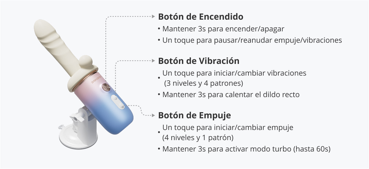 Placer personalizado y completo: estimulación simultánea del punto G y el clítoris con múltiples combinaciones de vibración, empuje y calor.