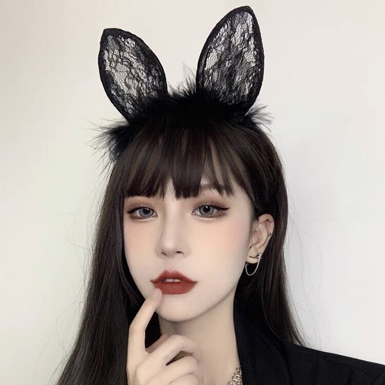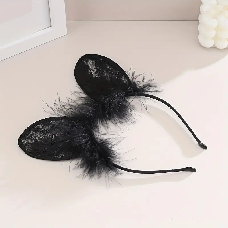 Vincha fina de metal con orejas de gato forradas en encaje y plumitas decorativas. Ideal para combinar con tus outfits.