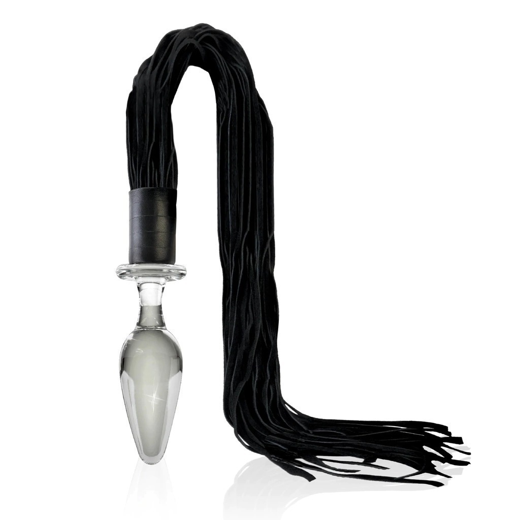 Este lujoso plug de vidrio cuenta con verdaderos trozos de cuero de toro que son lo suficientemente suaves para jugar en la previa, pero lo suficientemente pesados como para entregar un golpe firme!