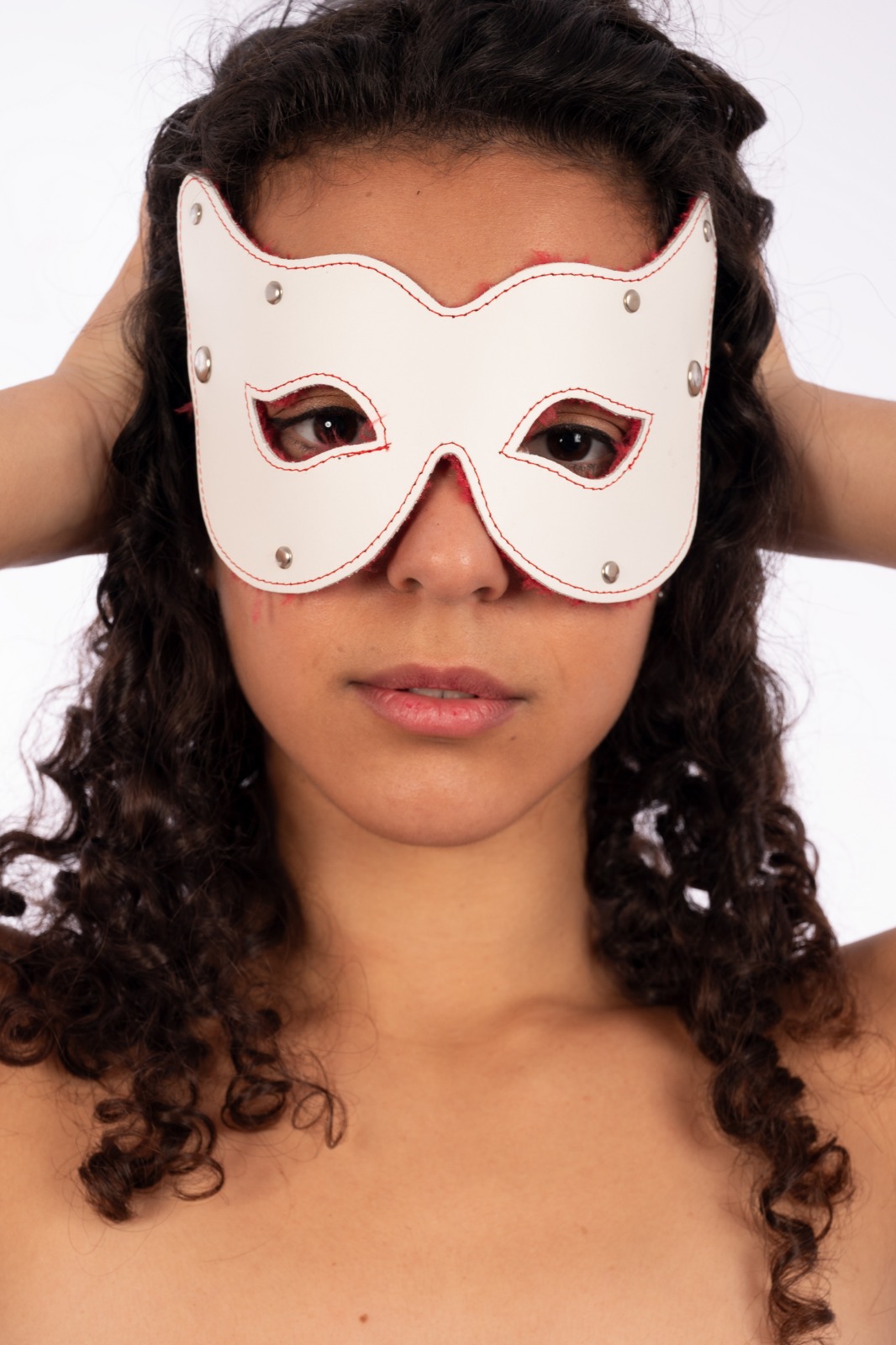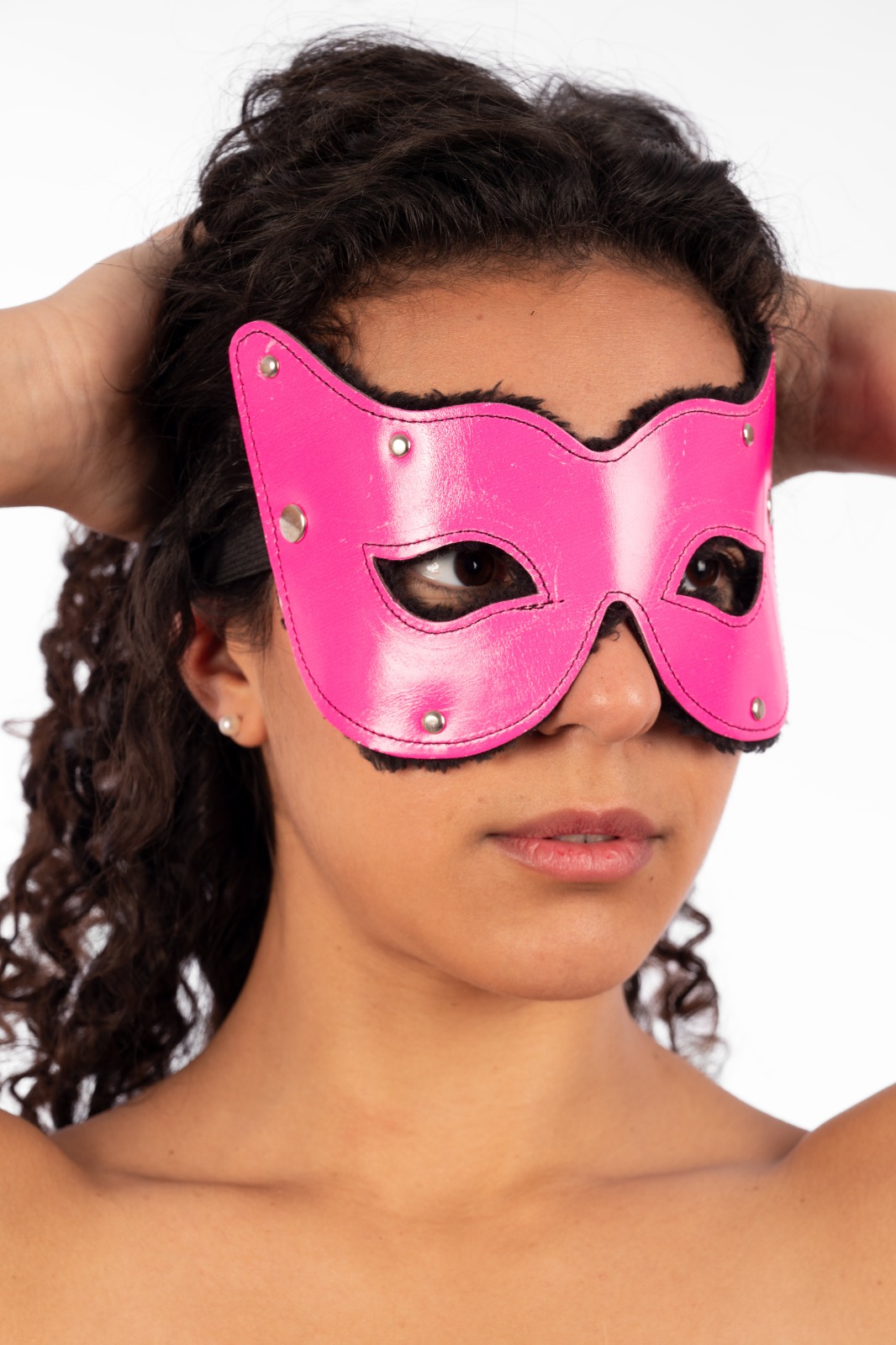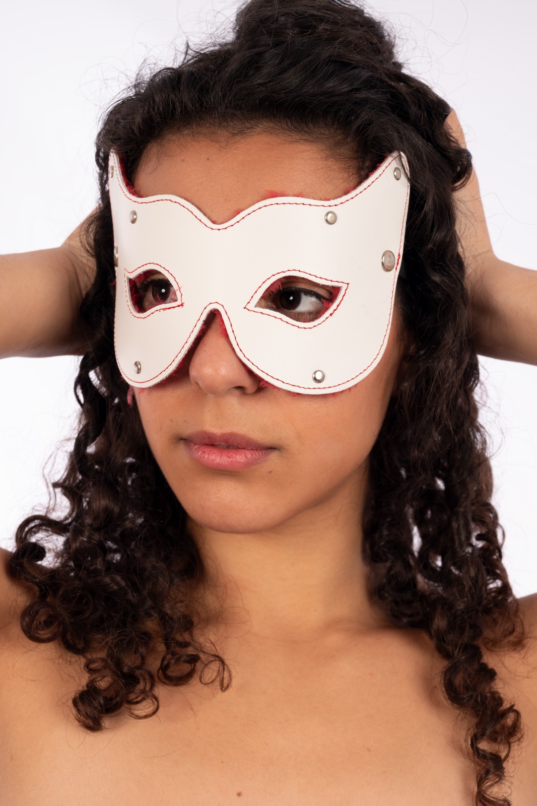 Elegante antifaz de cuero y plush muy suave y agradable al tacto, con los ojos calados.