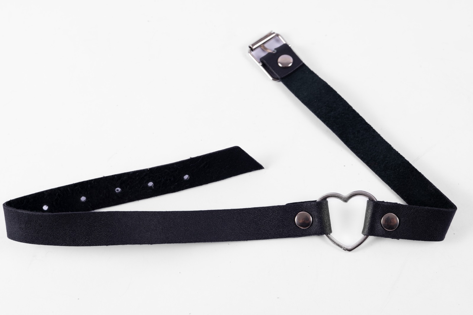 Collar unisex de ecocuero con hebilla corazón para resaltar cualquier outfit. Ideal para enganchar esposas o correas y sentir una sumisión total.