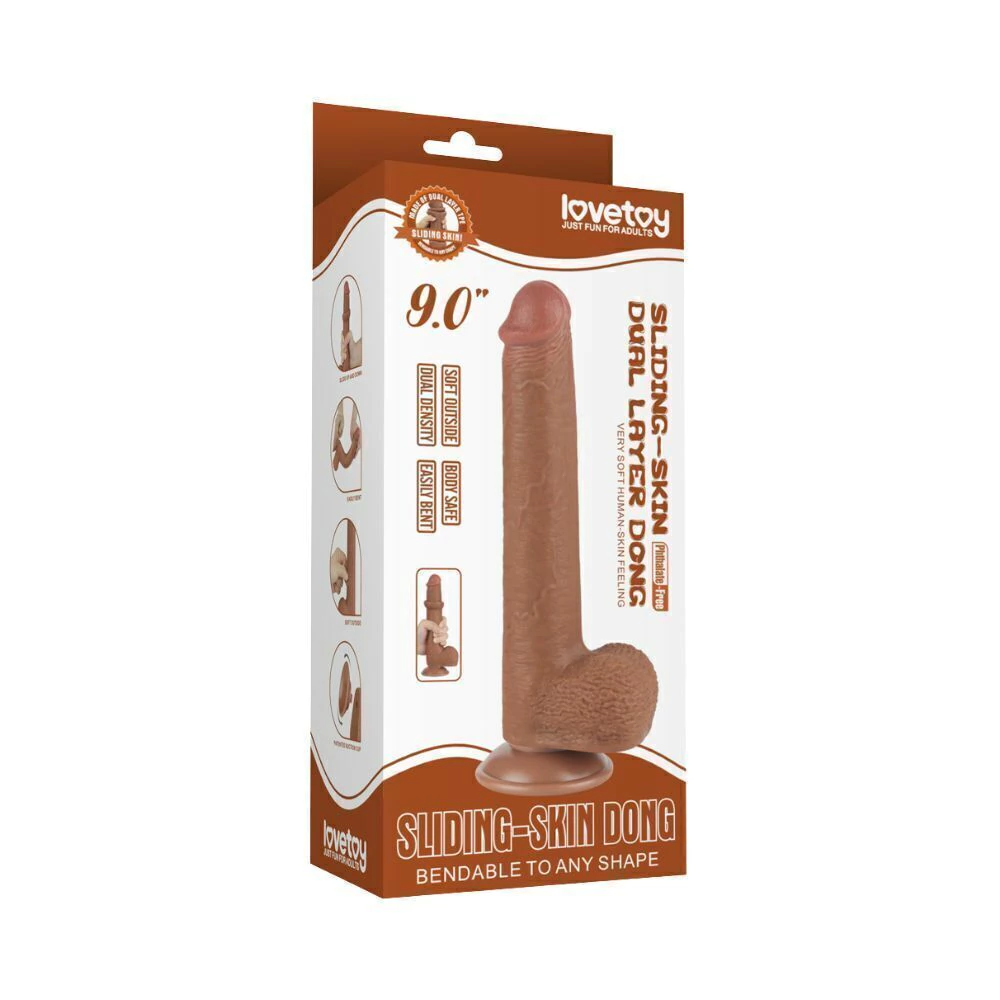 ¿Cuáles son los beneficios del Lovetoy 9'' Sliding Skin Dual Layer Dong Brown?