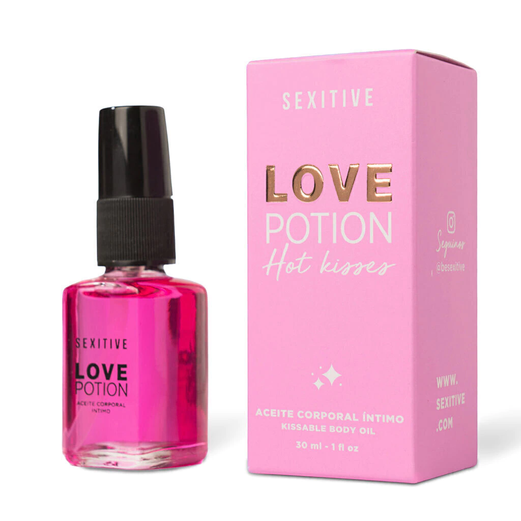 Besos íntimos. Este es tu momento. Descubrí la pasión con los aceites comestibles, cálidos y sedosos Love Potion, harán de tus besos intimos los más sensuales.